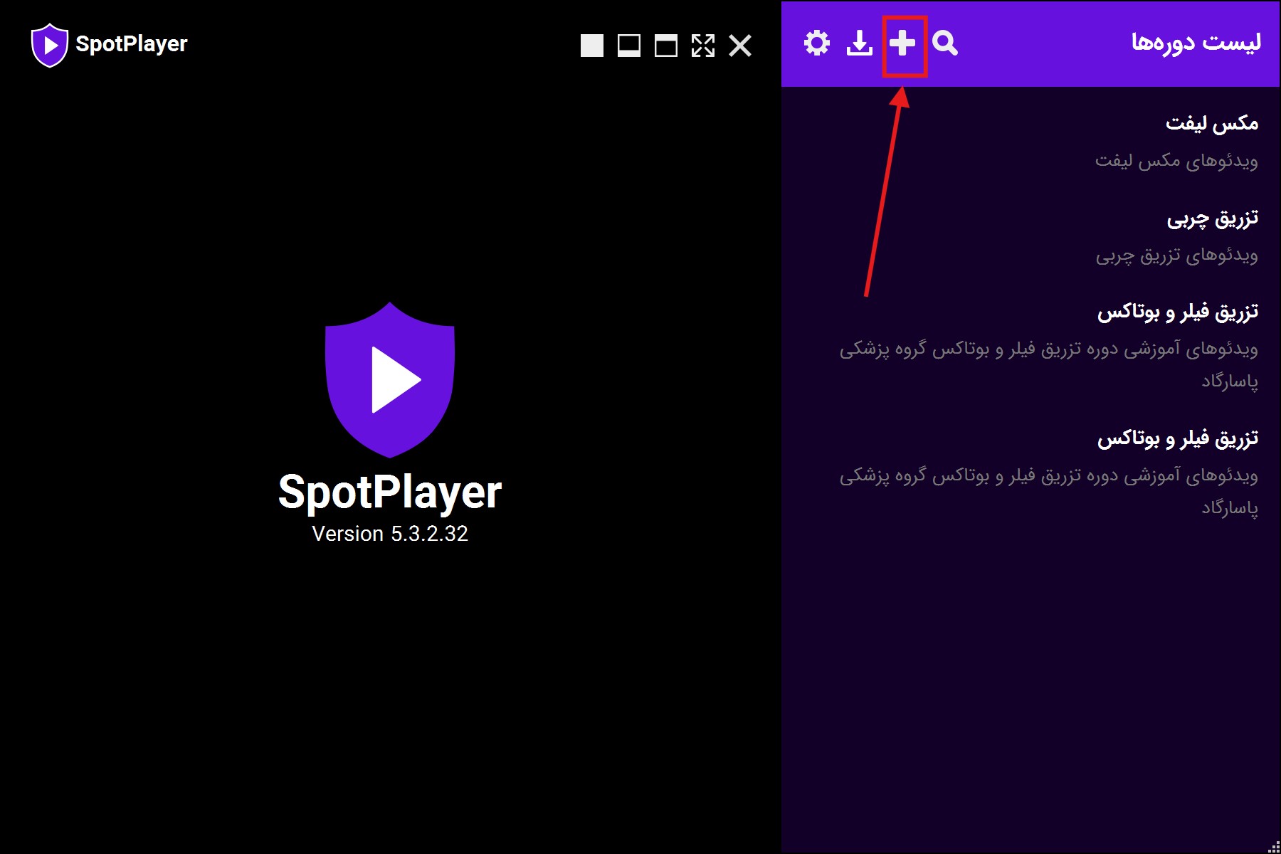 شما با فشردن علامت + در بالای نرم افزار می توانید لایسنس دریافت شده از طرف پاسارگاد را به لیست لایسنس های خود اضافه کنید و بعد از آن، ویدئوهای مربوطه برای شما فهرست خواهند شد.